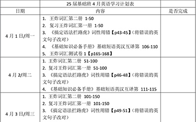 单词、作文默写、日常打卡训练、全程魔鬼式测试考核。