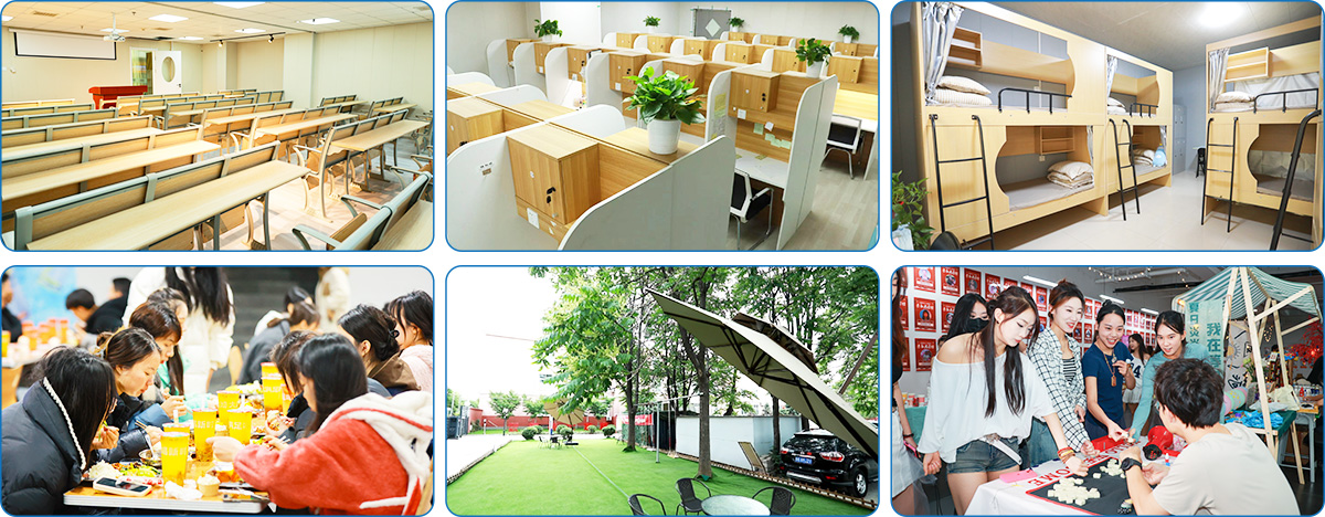 舞研拥有标准化多媒体教室、晨读默写教室和技能专业教室等教学硬件设施,并配有食堂、宿舍、快递驿站等基础设施。